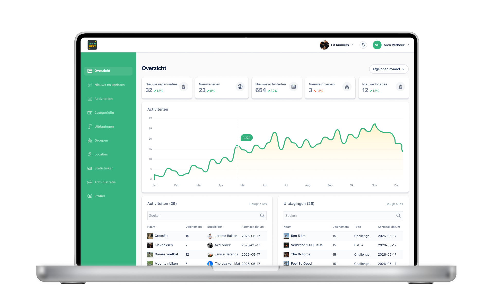 Met het Op Je Best dashboard kun je zelf alle informatie beheren en geven we je inzicht in alle sporters die zich aangemeld hebben voor jouw activiteiten.